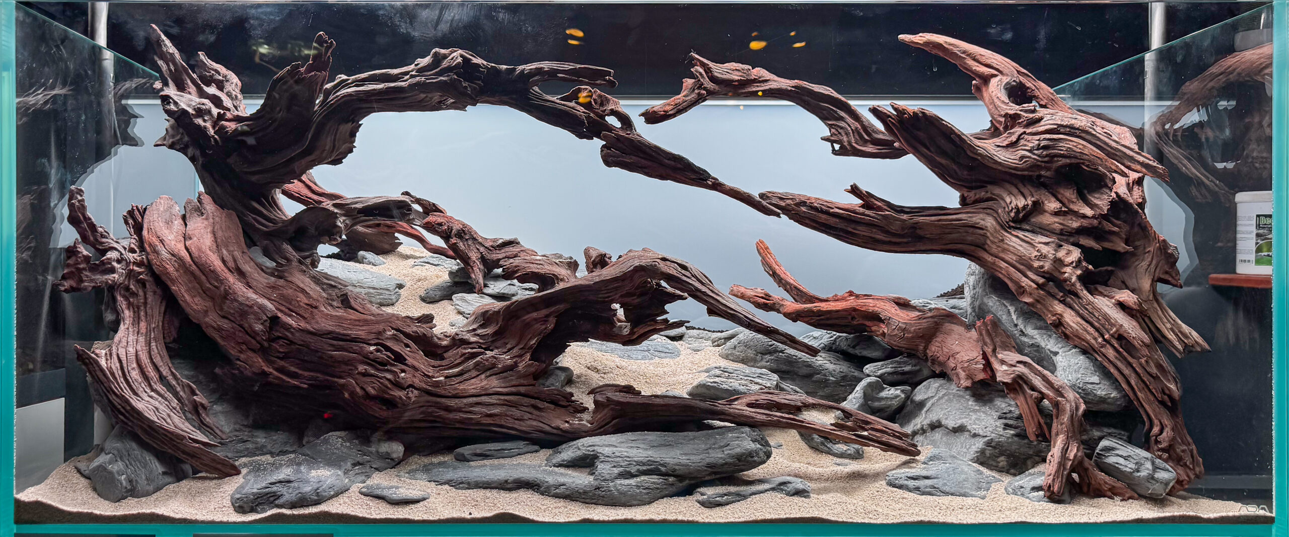 Dieses Layout habe ich kurz nach unserer Reise nach Japan entworfen und war noch sehr von den dort gesammelten Eindrücken geprägt. Gleichzeit war es eines der ersten Aquarien die nicht beim einrichten mit Videodreh begleitet wurden. Enstprechend mehr Fokus lag auf der ausgefeilten Platzierung der Hardscape Elemente, bei der ich mich auch deutlich aus meiner Komfortzone gewagt habe. Auch wenn es kein echtes Diorama ist, spielt das Layout doch deutlich mehr mit Perspektive und Größenverhältnissen.