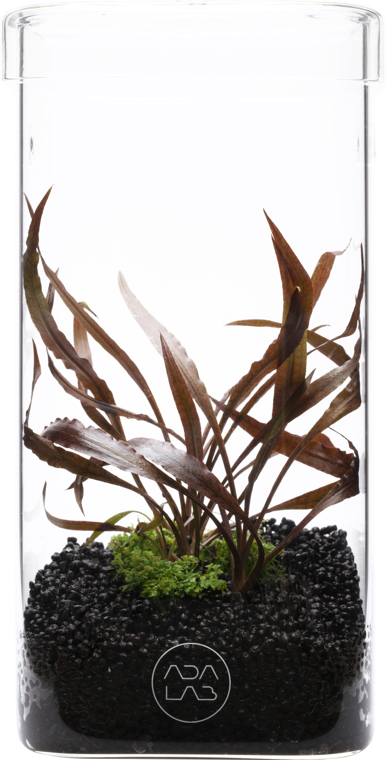 Der Glas Pot Kaku ist ein dekoratives kantiges Glas Gefäß mit Abdeckung ideal für kleine Wabi Kusa und Mini-Paludarien.
