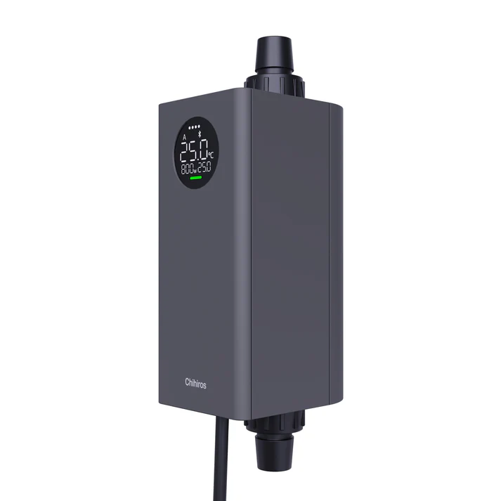 Der Chihiros Pro Heater ist ein moderner externer Aquariumheizer. Er bietet eine sehr präzise Temperatursteuerung und verteilt die Wärme gleichmäßig im gesamten Becken. Dank des digitalen Reglers lässt sich die gewünschte Wassertemperatur leicht einstellen und zuverlässig halten – sowohl in Süßwasser- als auch in Meerwasseraquarien. Durch sein kompaktes, unauffälliges Design fügt sich der Heizer harmonisch in externe Filtersysteme ein und bleibt dabei nahezu unsichtbar, was zu einem aufgeräumten, ästhetischen Gesamtbild des Aquariums beiträgt.