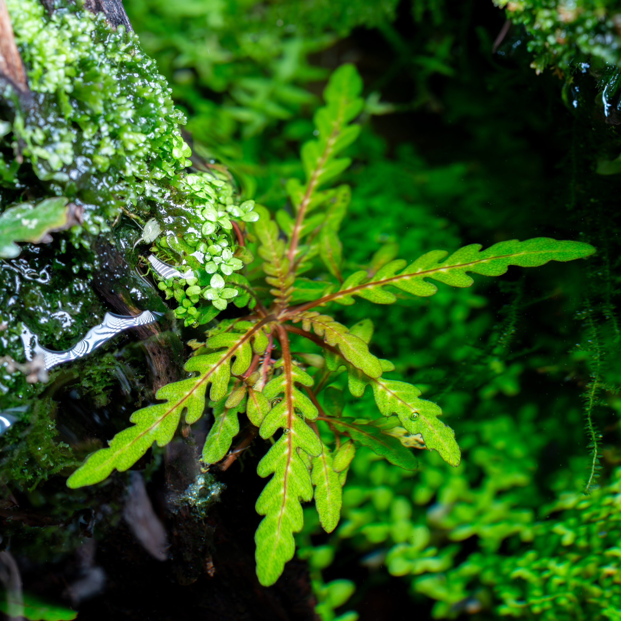 Der fiederspaltige Wasserfreund entwickelt im Aquarium einzigartig gelappte Blätter mit olivgrüner bis roter Farbe, die Blattunterseiten sind oft weinrot.