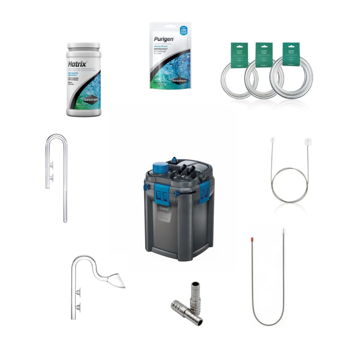 Mit dem Liquid Nature Filter Bundle bekommst du das Komplettpaket für dein Aquascape nach unserer Empfehlung. Der Oase Biomaster2 Thermo ist mit einer der komfortabelsten Außenfilter am Markt, den wir in unserer Galerie bevorzugt einsetzen. Dazu bekommst du das genau passende Equipment. Der Filter wird mit Seachem Matrix, Seachem Purigen und dem passenden Vorfilterschwamm bestückt. Die AquaRebell Glaswaren und der Chihiros Clean Hose verleihen deinem Poolaquarium die edle Leichtigkeit und mit der ADA Spring Washer und der Chihiros Schlauchbürste hast du auch das notwendige Reinigungsequipment.